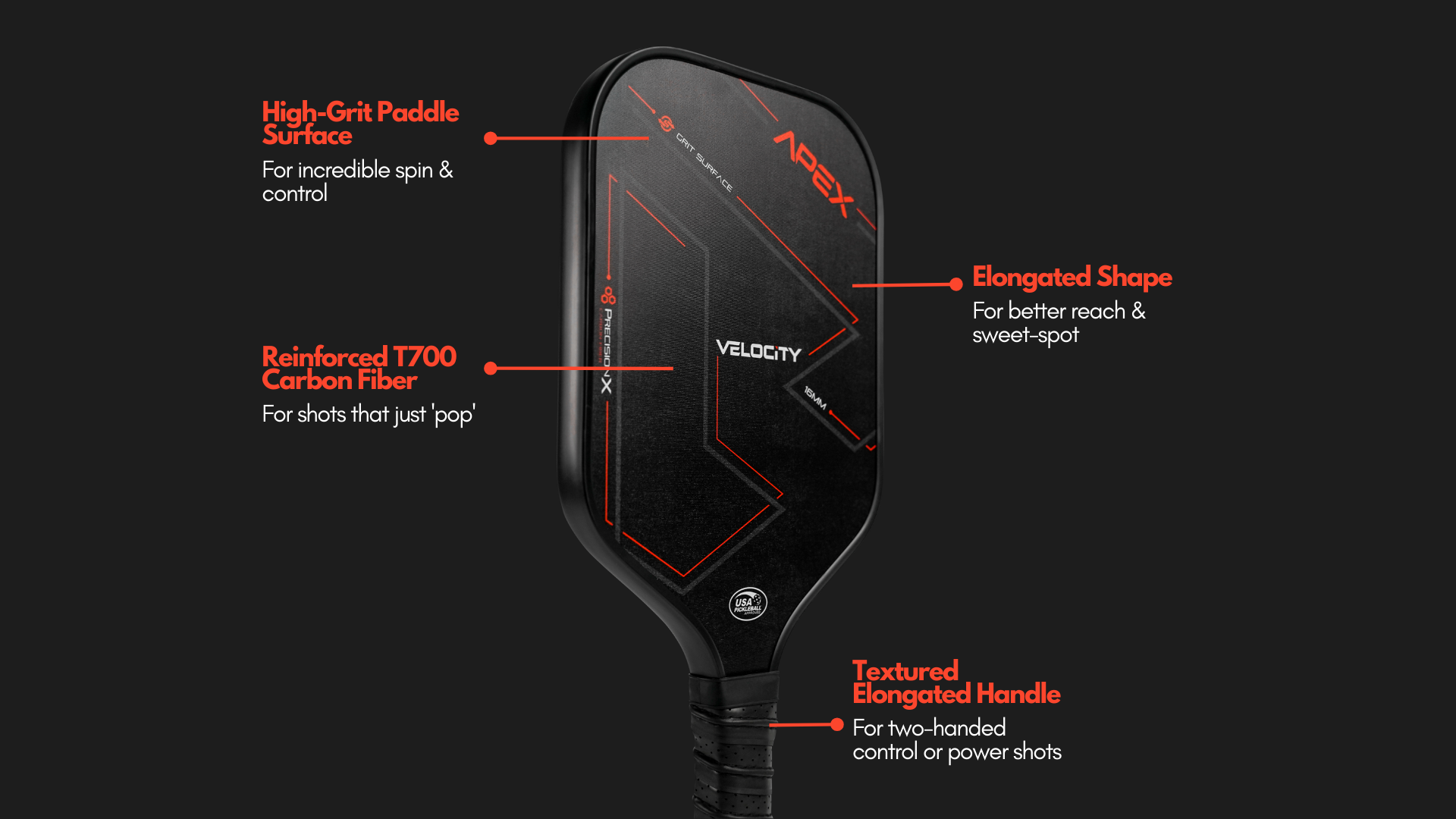 When pride and points are on the line, you'll be looking for any small advantage over your opponent. The APEX paddle is your biggest advantage!