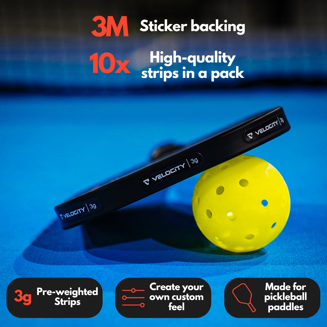 Lead tapes: Our lead tapes are weighted 3g strips that you can stick onto the edges of your paddle to increase power or optimize your paddle's weight balance.